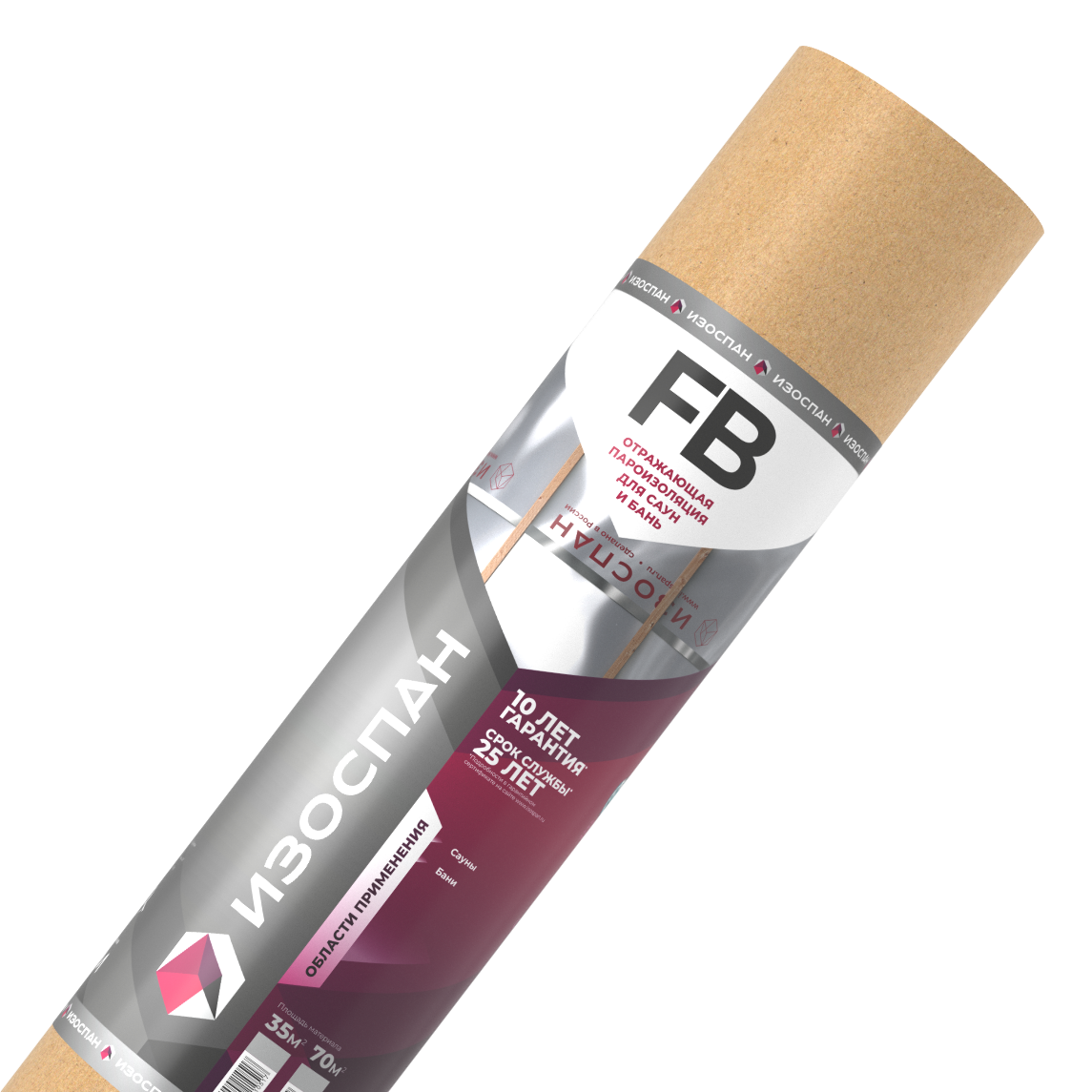 Изоспан FB — материал, выполненный из крафт-бумаги и металлизированного лавсана.